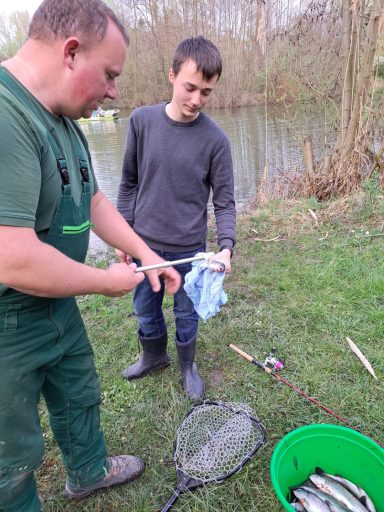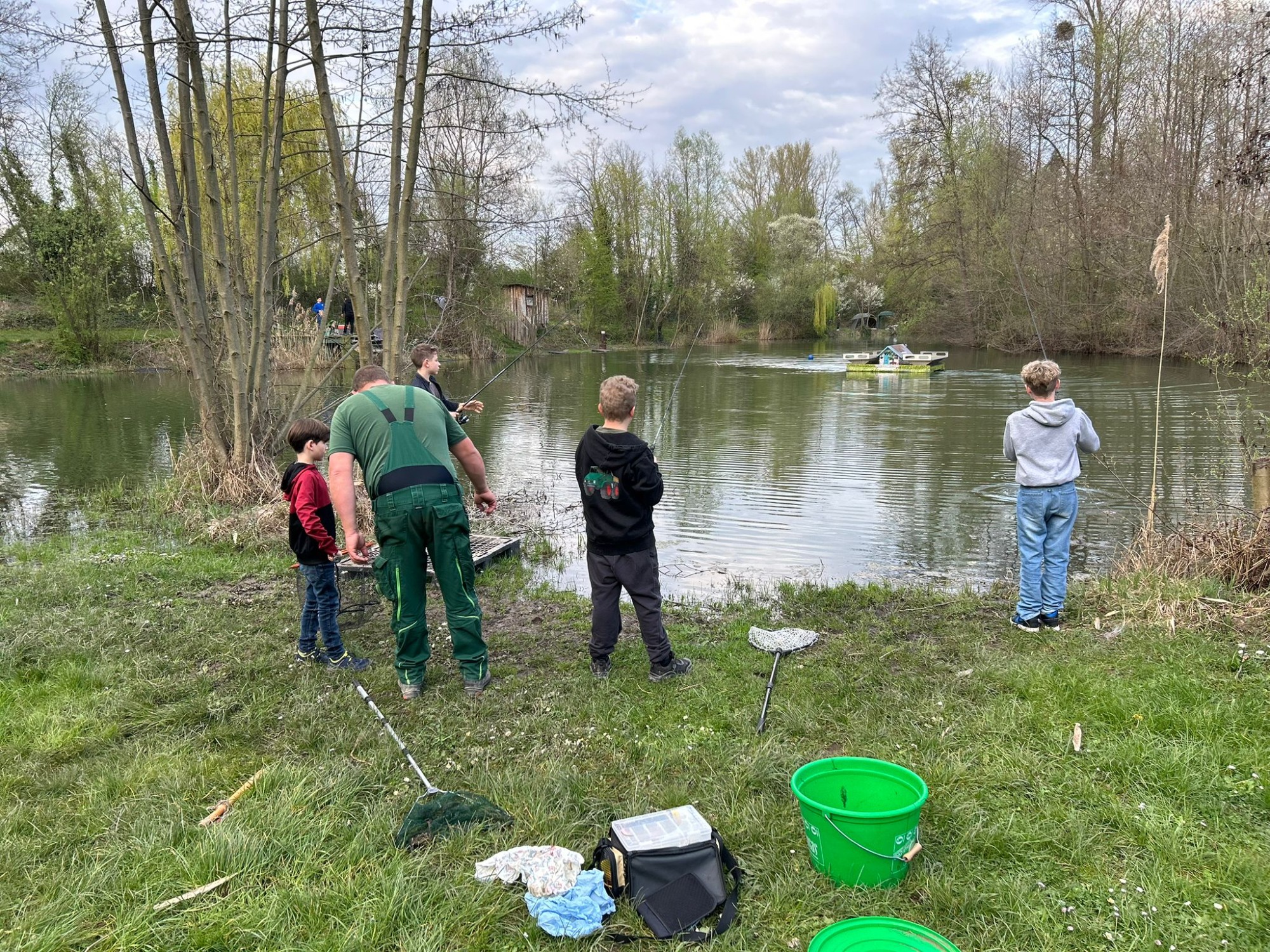 Mit 10 Jugendlichen beim BSFV-Fischen im Rheinauer Hafen.